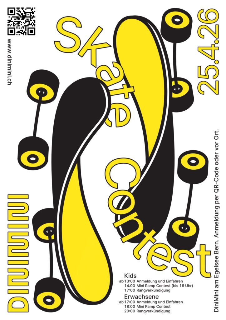 Der DiniMini Contest ist offen für alle. Es wird verschiedene Kategorien geben. Wenn du nicht skaten möchtest, darfst du gerne zum Zuschauen vorbeikommen. An diesem Tag findet ausserdem das Open House des Vereins am See statt – es gibt vor Ort einiges zu entdecken.